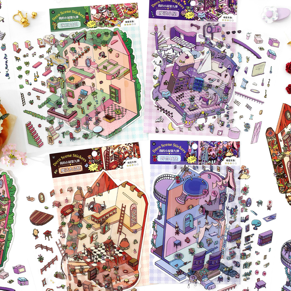 送镊子)造景贴纸微缩场景合集本贴纸本立体换装贴纸女孩儿童diy防水贴画亲子小游戏解压小屋玩具装饰小图案