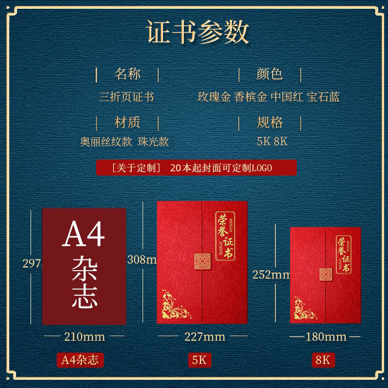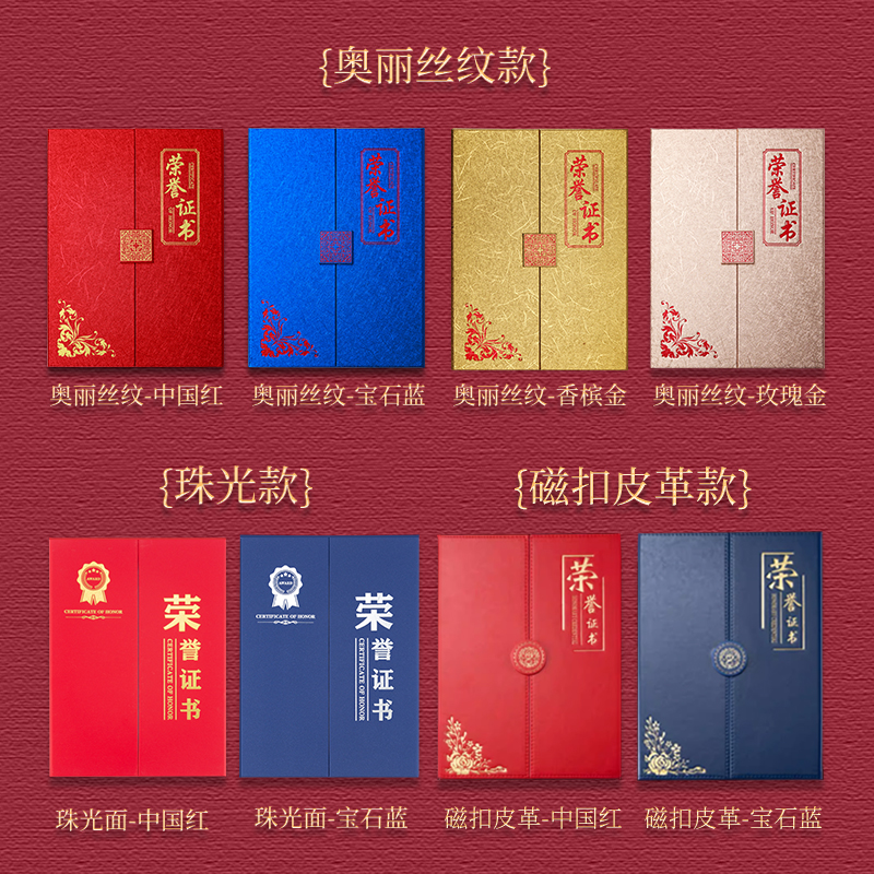 三折荣誉证书定制a4外壳证书套封面保护套对开奖状封皮内页可打印