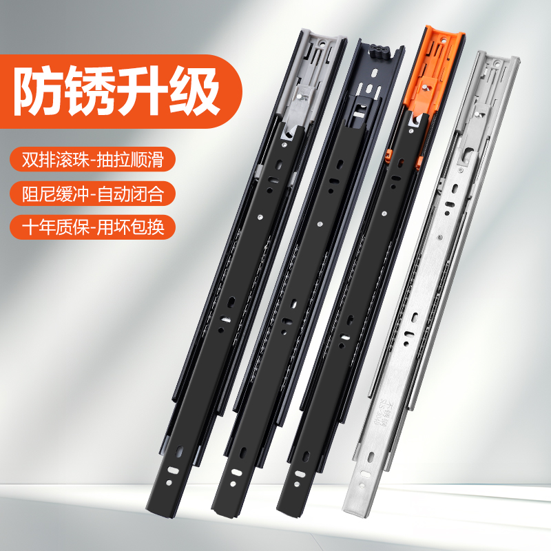 抽屉滑轨不锈钢三节阻尼缓冲衣橱柜导轨加厚静音键盘滑道五金配件