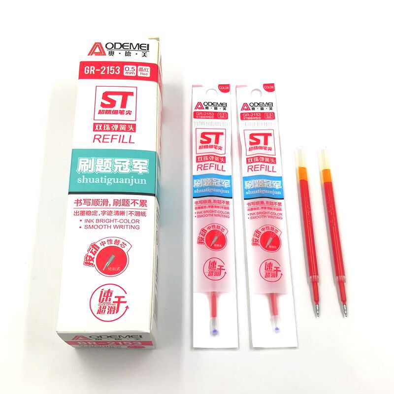 奥德美按动笔芯0.5碳黑ST按动中性替芯笔芯晶蓝红色刷题笔芯速干
