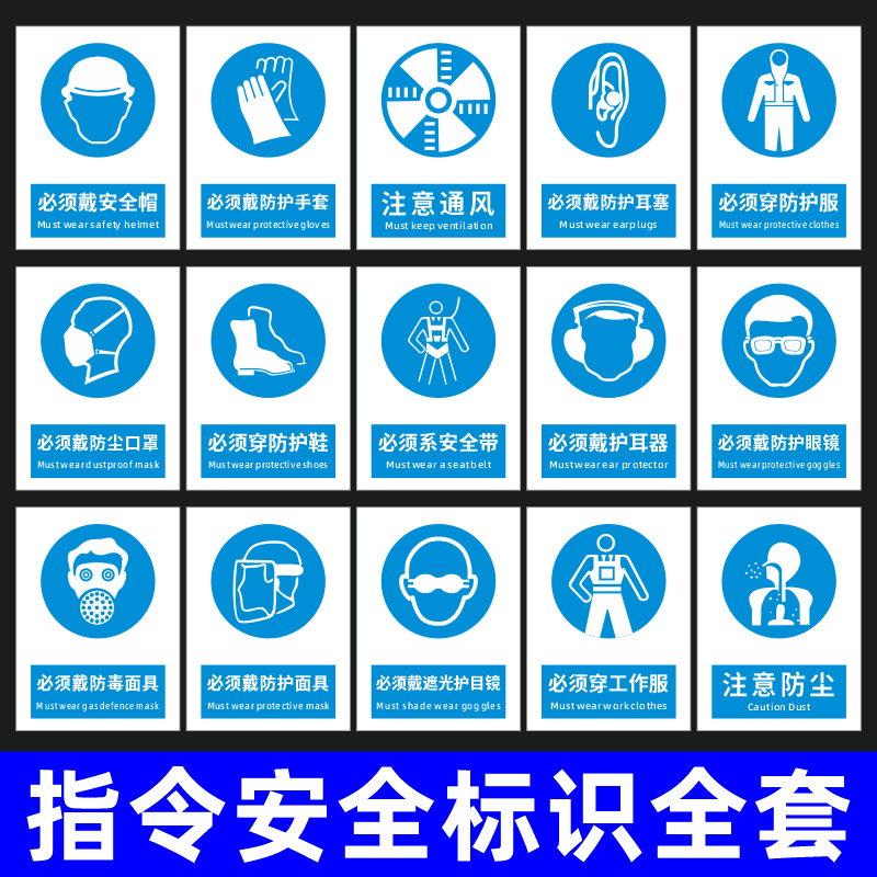 安全标识牌警告标志注意通风必须戴防护手套带防尘口罩面具生产车间工厂仓库工地施工现场严禁烟火pvc牌定做
