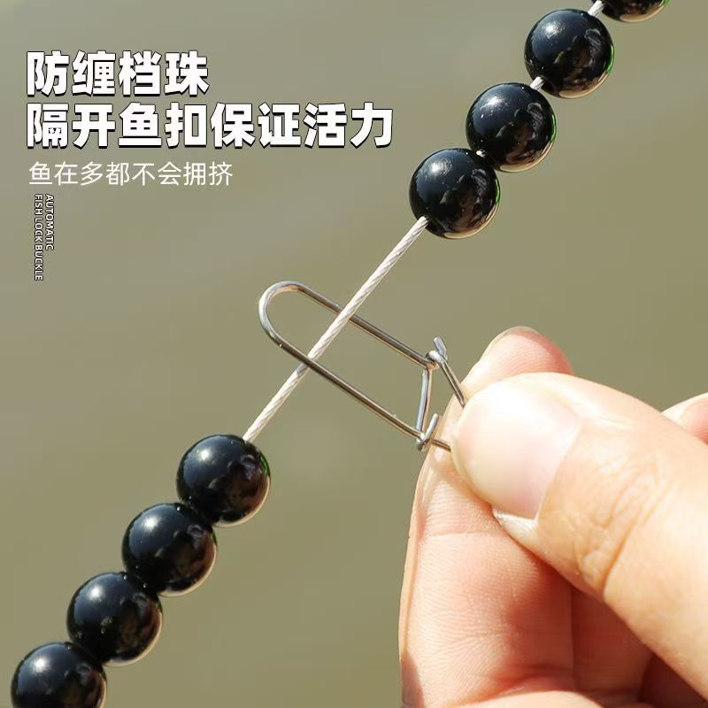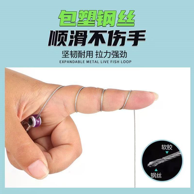 新款活鱼扣自动收线鱼锁大物活鱼鱼锁扣加强不锈钢钢丝包胶鱼锁