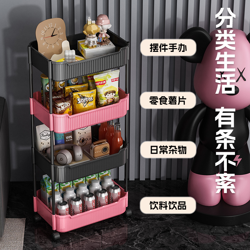 移动收纳架置物架落地多层带轮客厅卧室宿舍学生蔬果架小推车塑料