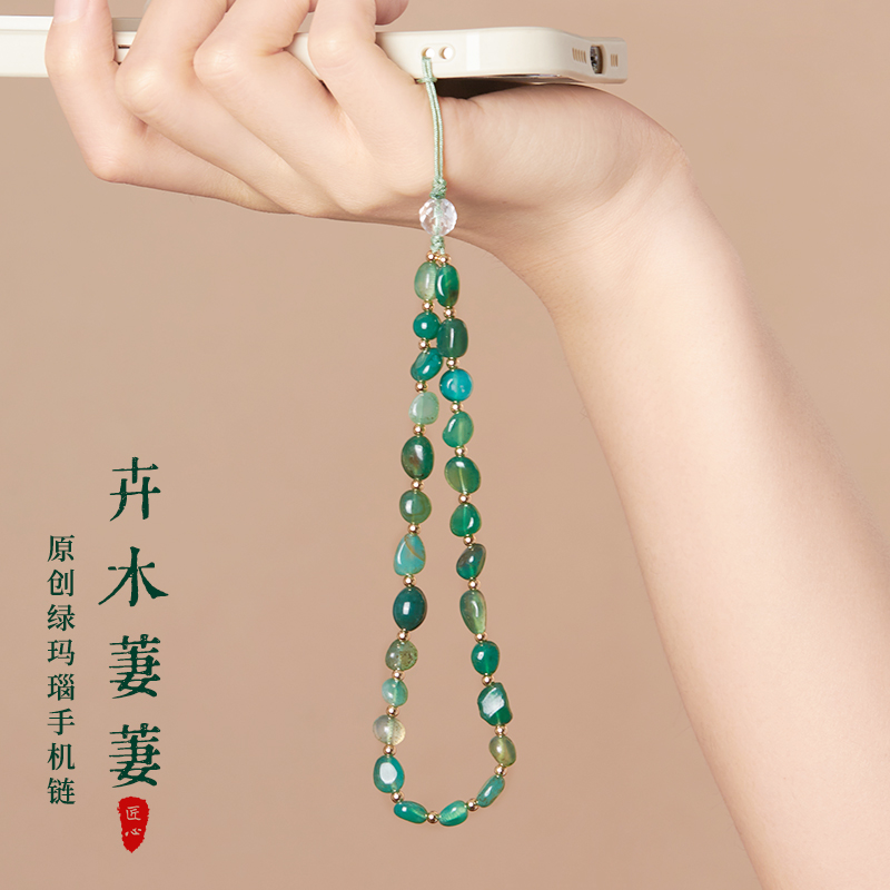 原创绿玛瑙手机壳挂绳天然白水晶吊坠手机链挂手腕绳挂件女高端精致文艺范防丢手机绳挂饰挂链u盘高级感链绳