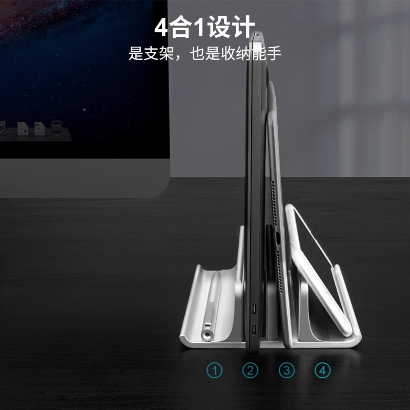鹿为 笔记本电脑立式支架铝合金macbook手提竖立桌面散热收纳底座
