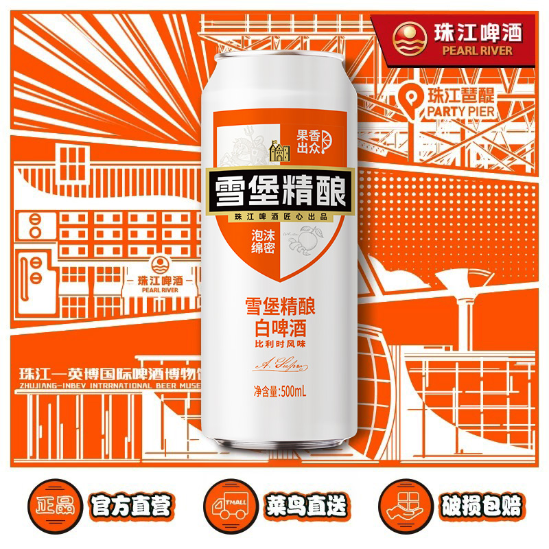 珠江啤酒11°雪堡精酿比利时风味白啤酒500ml*12罐整箱中秋节送礼