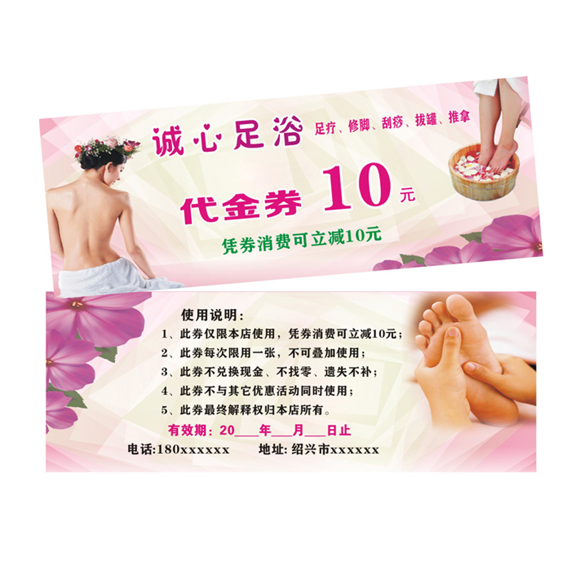 足疗代金券定制养生体验券按摩推拿优惠券折扣券修脚现金券制作