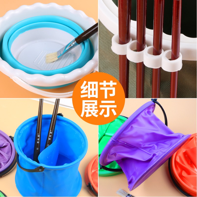 洗笔筒美术生专用可折叠硅胶水桶水粉水彩涮笔筒便携手提小号油画丙烯颜料画画桶国画毛笔水桶绘画洗笔桶工具