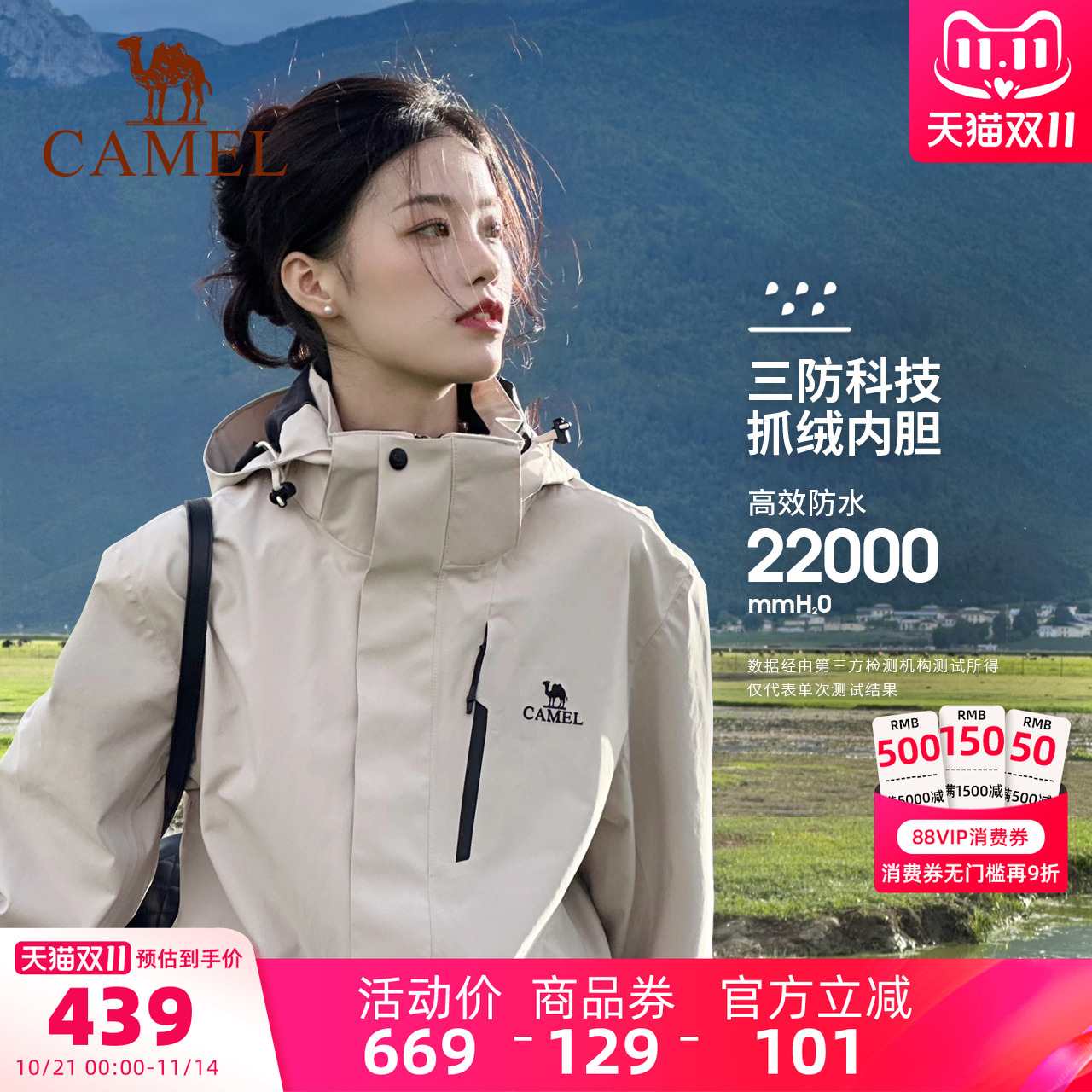 骆驼3514系列冲锋衣女三合一户外登山服男防暴雨防风防水旅游外套