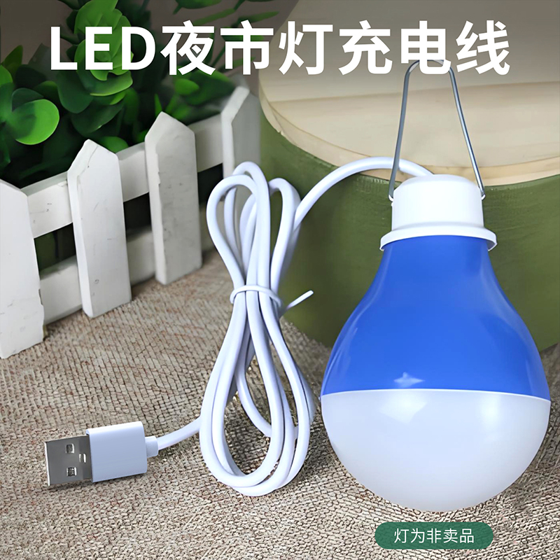 LED灯泡充电线应急灯节能灯地摊灯夜市照明灯充电器USB圆头孔数据线充电器电源线安卓typec扁圆接口圆头孔
