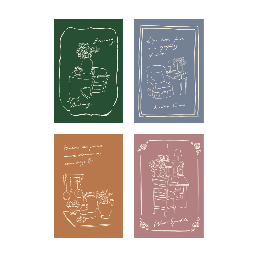 【平方Studio】四重奏便签本 原创手绘法式插画手帐素材装饰m5