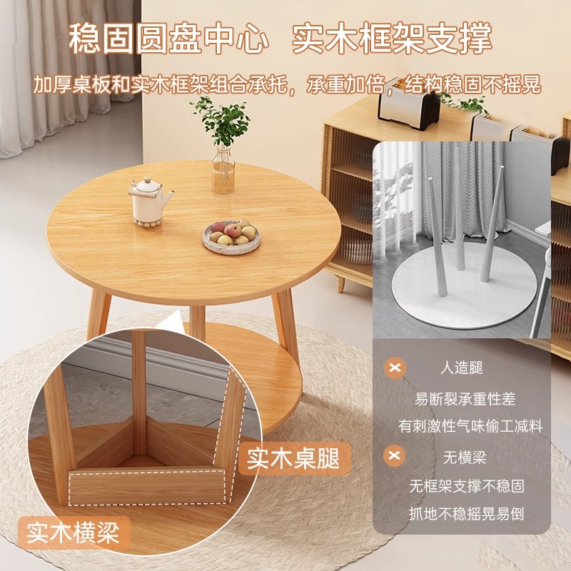 实木餐桌家用小户型洽谈桌椅组合现代简约吃饭桌子小圆桌茶几橡木