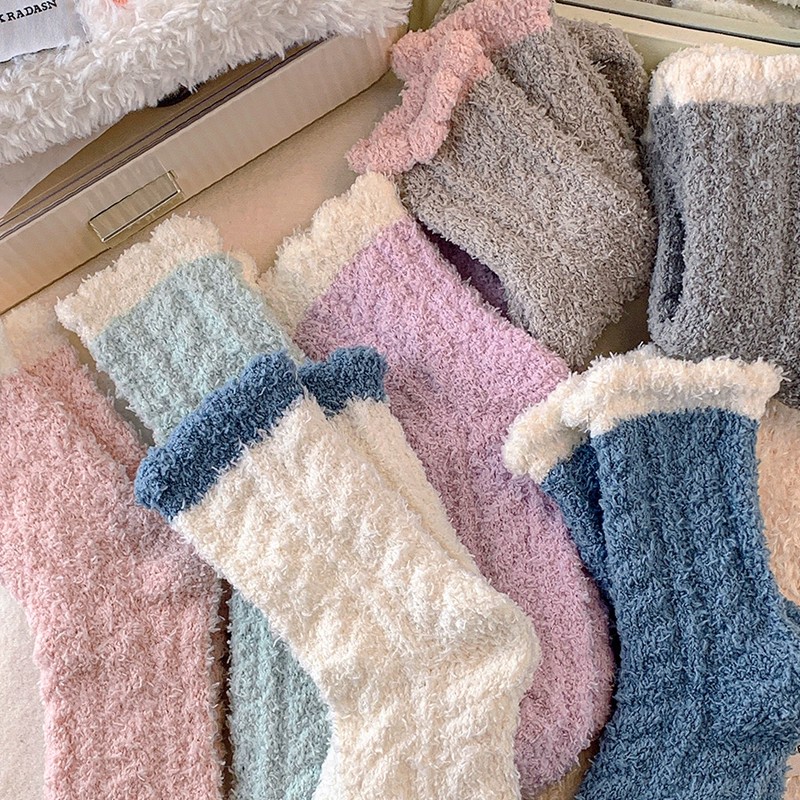 珊瑚绒袜子女冬季加厚加绒保暖地板袜睡眠月子袜秋冬新款睡觉袜子