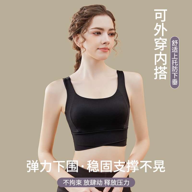 运动内衣女高强度健身跑步防震瑜伽服一体美背心式文胸聚拢防下垂