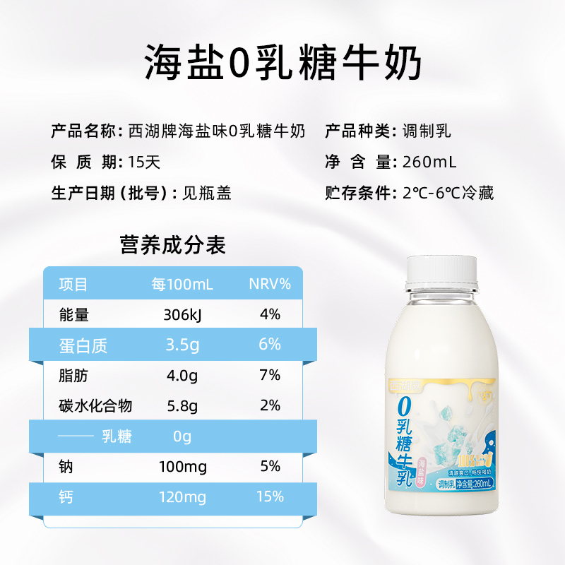 海盐0乳糖牛奶260mL*8瓶新鲜低温奶无乳糖好吸收乳糖不耐受