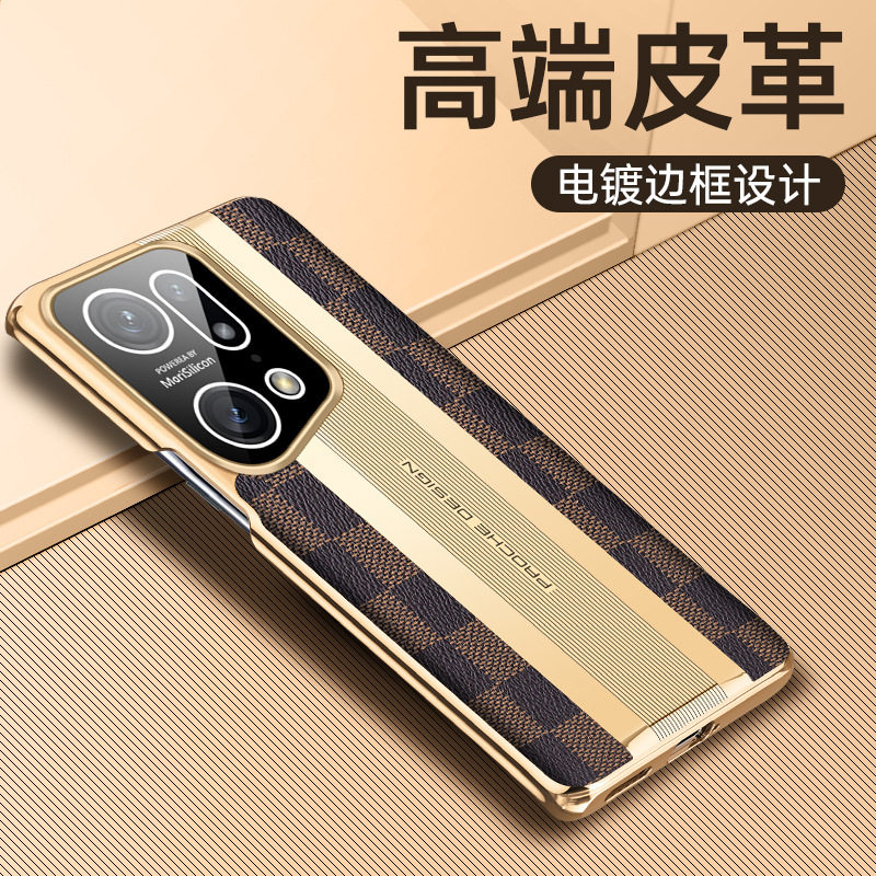 适用OPPOReno9手机壳8pro+秒变格子纹findX5高端皮纹商务7Pro全包镜头膜防摔保护套