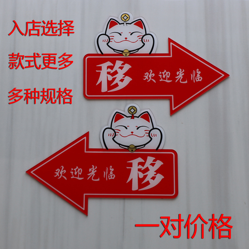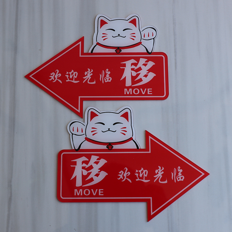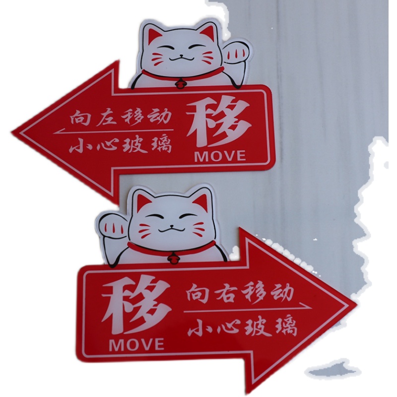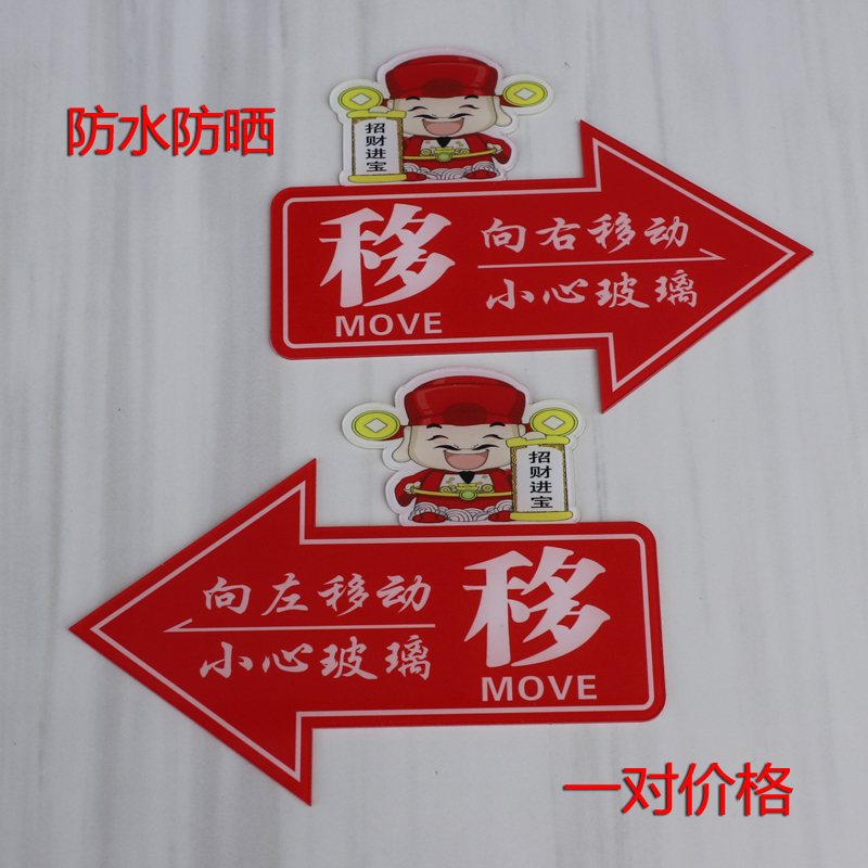亚克力推拉移门字小心玻璃指示贴纸的创意个性向左右箭头标志牌子