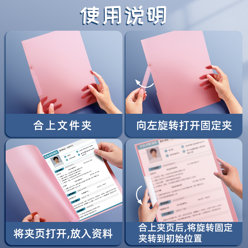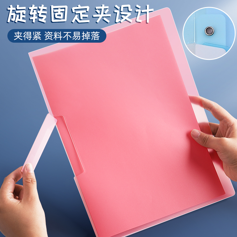 旋转侧开扣式PP文件夹A4抽杆夹摇摆夹资料夹档案夹拉边夹报告夹斜拉夹收纳夹小学生试卷整理神器办公摆荡夹子