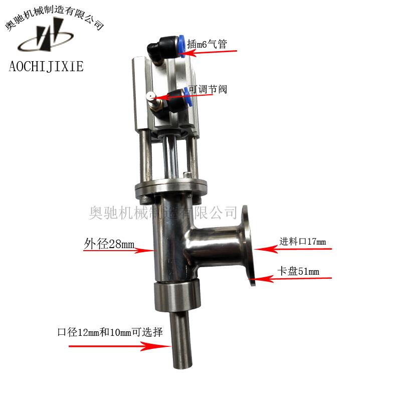 奥驰灌装机总成卧式灌装机配件膏体出料口酱料出料阀不锈钢配件定