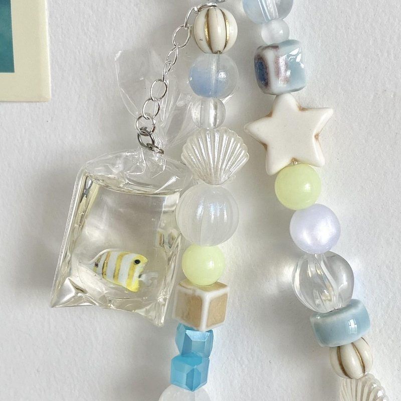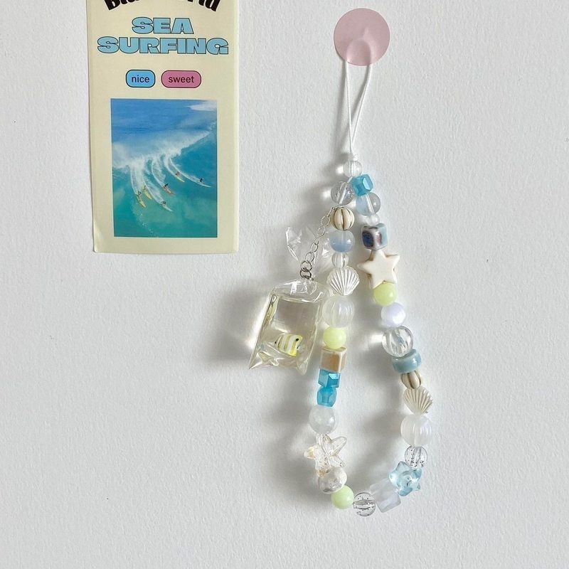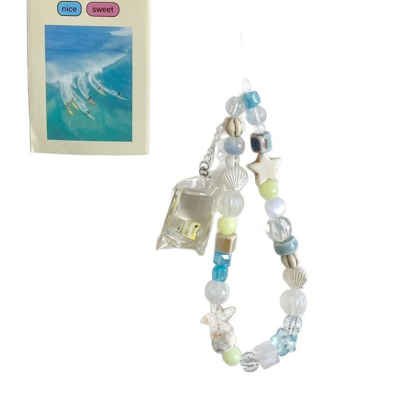 小海风清新串珠手手机壳夏日diy吊坠配色链条小鱼星星ccd相机挂绳