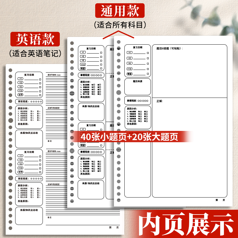 b5活页错题本初中生专用小学生活页本数学纠错本集高中生英语整理实用型改错本三年级笔记本子可拆卸艾宾浩斯