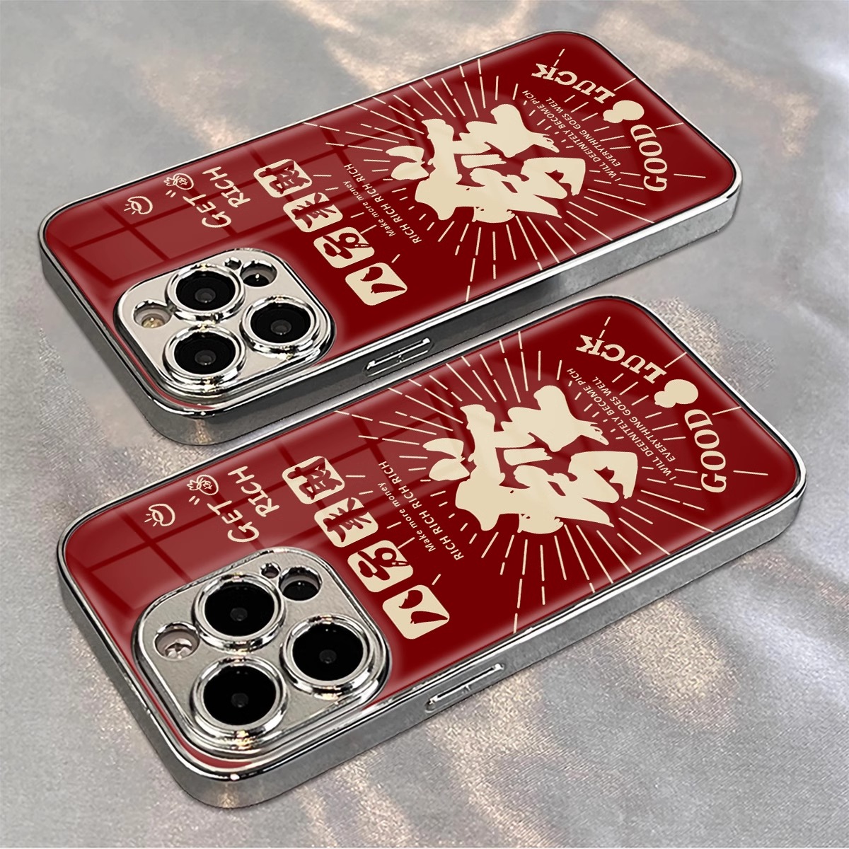 适用苹果16promax手机壳新款滴胶八方来财iPhone15新年14红色13高级感12pro保护套外11全包男女14防摔15pro