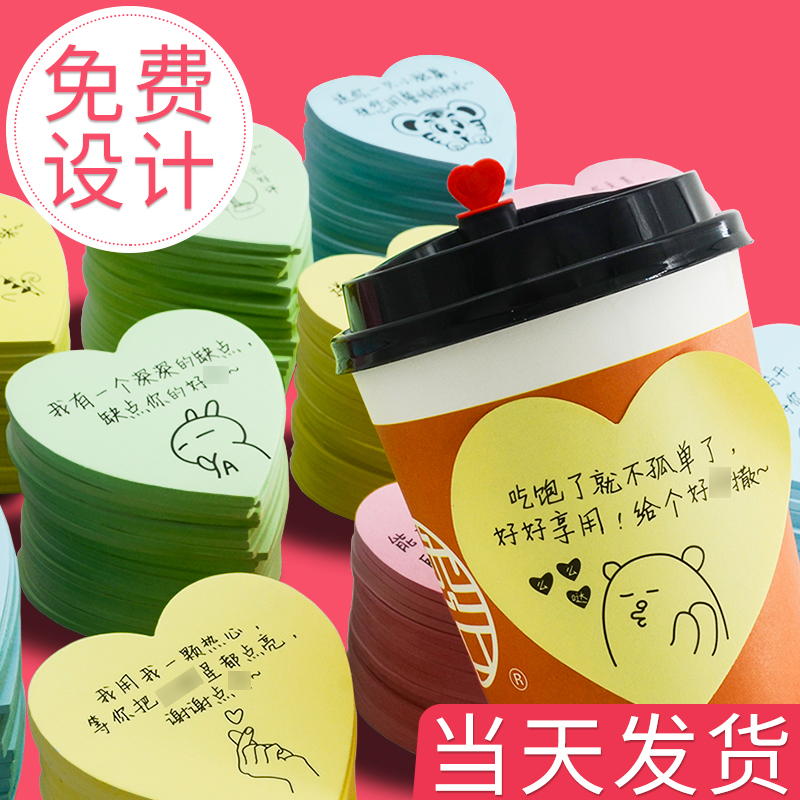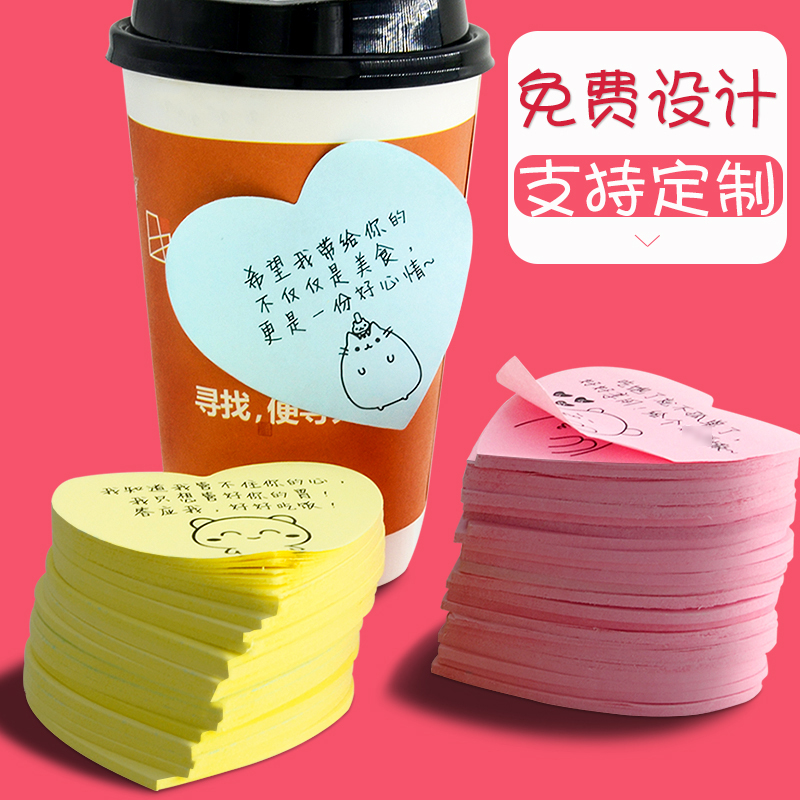 外卖便利贴定制贴纸网红创意搞笑餐饮奶茶店专用感谢暖心的提示手写广告二维码爱心便签纸心形带字