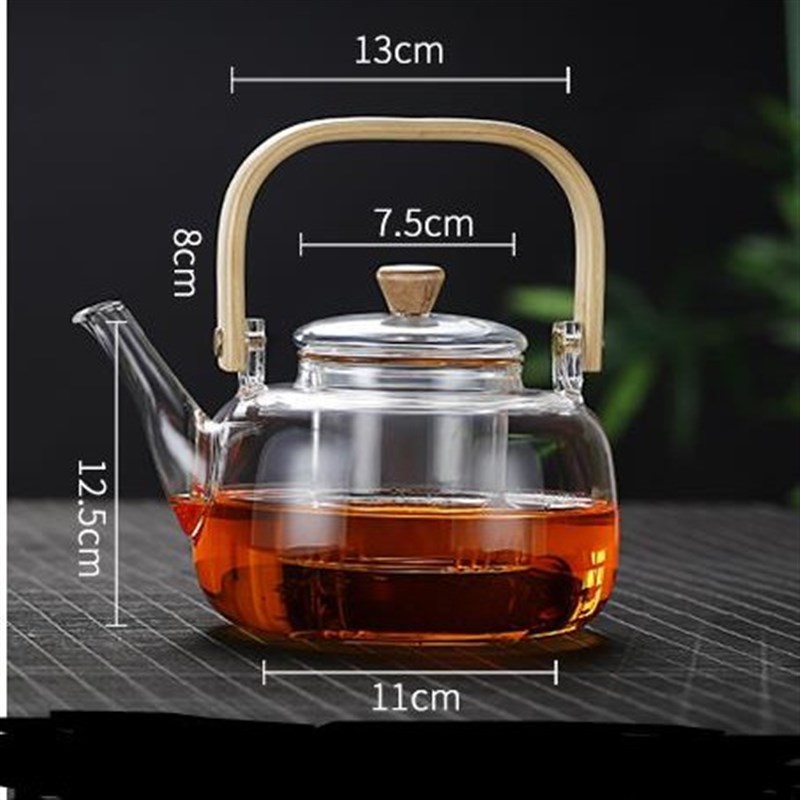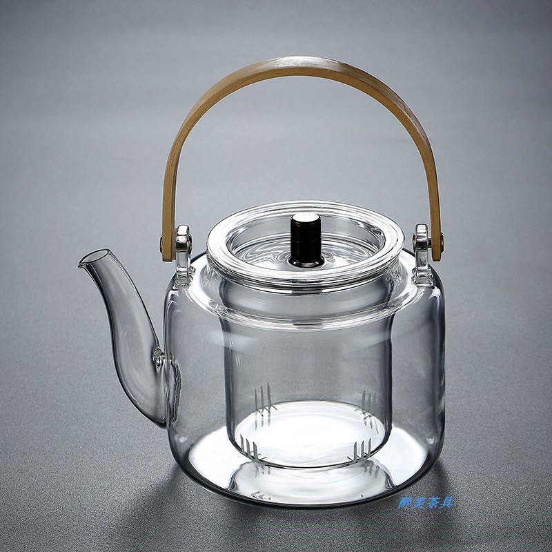 提梁壶耐热玻璃蒸煮茶壶耐高温蒸茶器电陶炉炭火围炉煮茶壶加金小