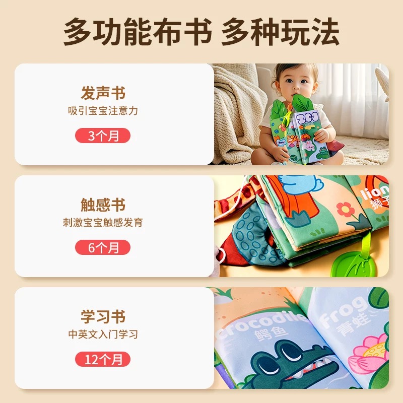jollybaby布书婴儿玩具撕撕书可啃咬益智早教安静书忙碌书手撕书