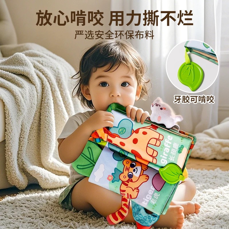 撕撕书婴儿玩具安静手撕布书可啃咬1岁宝宝6个月一早教粘贴魔术贴