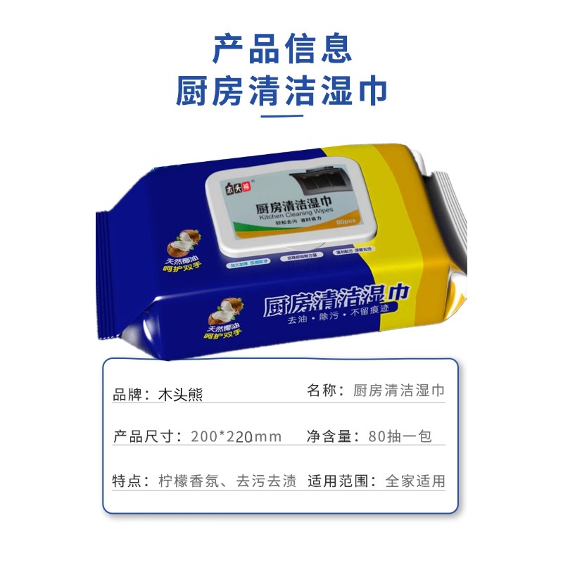 超大包730克厨房清洁湿巾强力油烟机去油污加大加厚不脏手湿纸巾