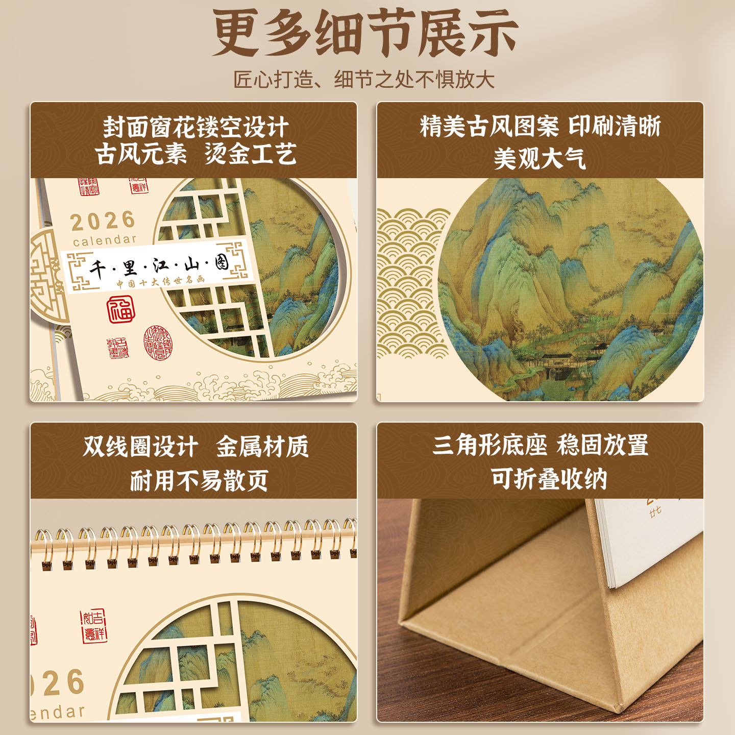 纸架窗花中国风台历2026年新款定制可印logo企业公司广告专版定做摆件横款记事日历本马年周历月历日历批发