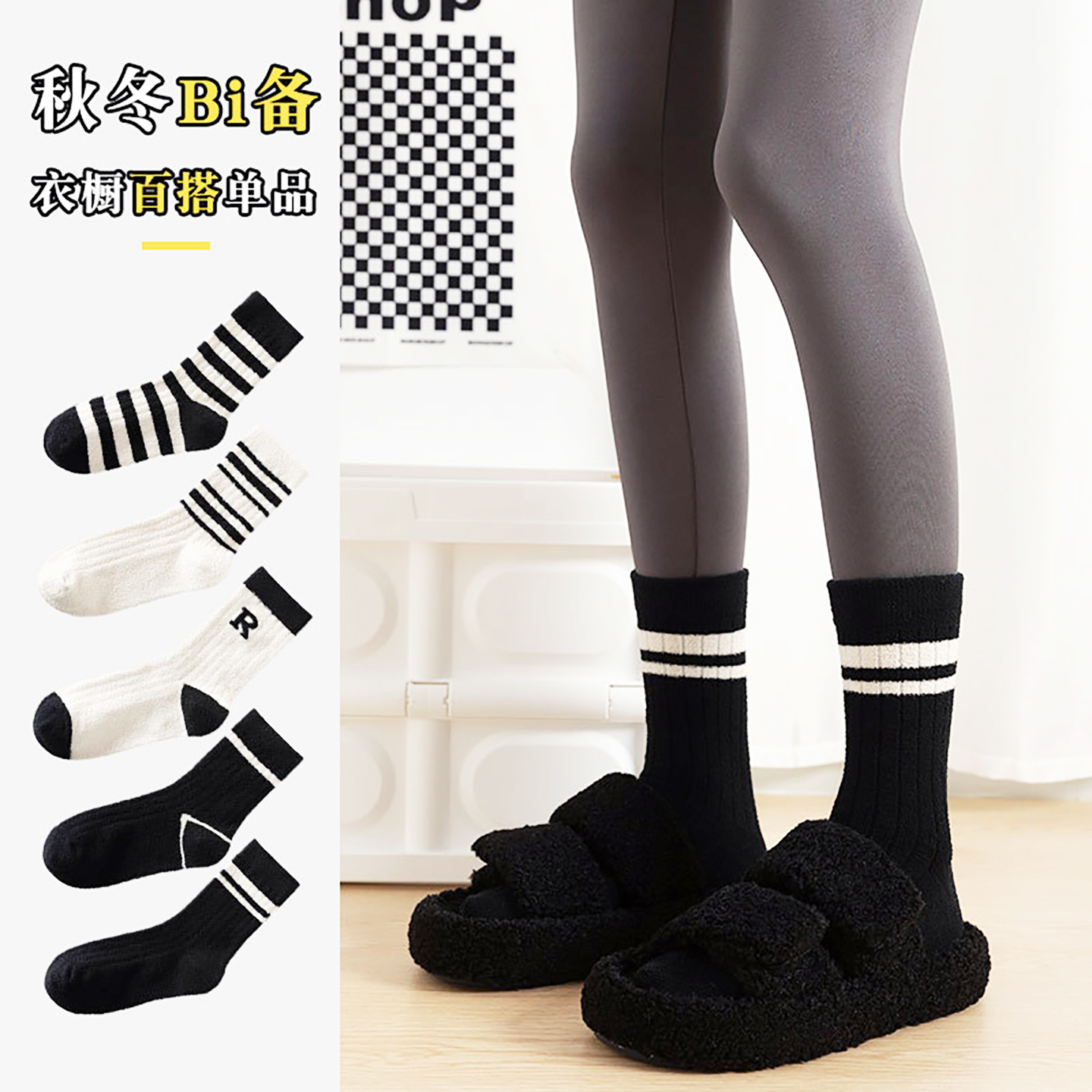 黑色袜子女中筒女袜2025新款秋冬袜加绒加厚棉袜马丁靴配的袜子潮