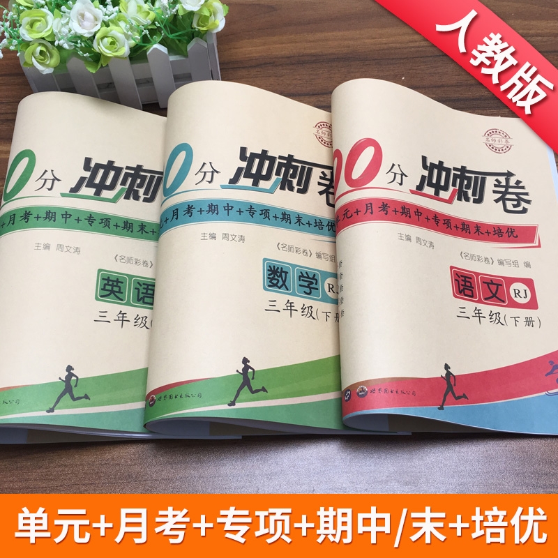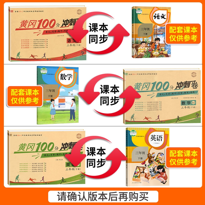 黄冈100分冲刺卷一二三四五六年级试卷测试卷全套语文数学英语人教版同步训练小学考试卷子练习题上册6年级语数英配套辅导新版基础