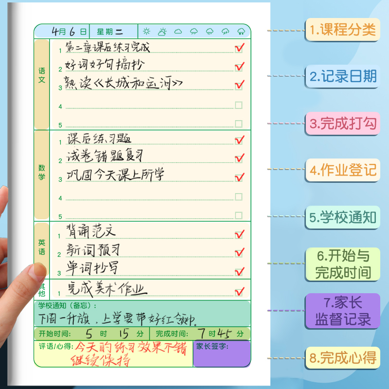 作业登记本小学生专用一年级用记课堂抄作业本记录本笔记本家校联系家庭初中生记作业小本子高颜值完成检查