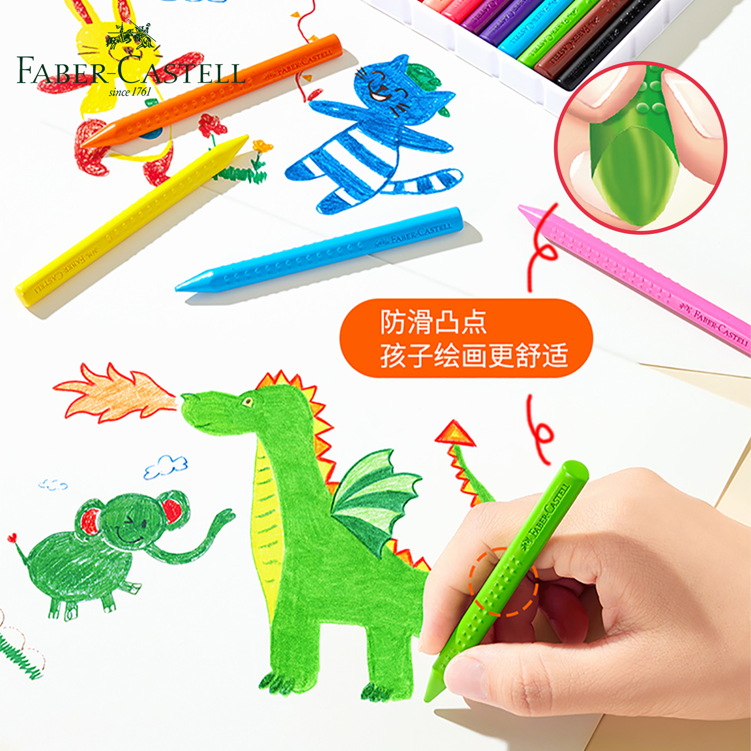 德国辉柏嘉三角可擦特点蜡笔12色24色绘画不脏手美术生儿童幼儿园小学生专用画画笔油画棒套装送橡皮擦卷笔刀