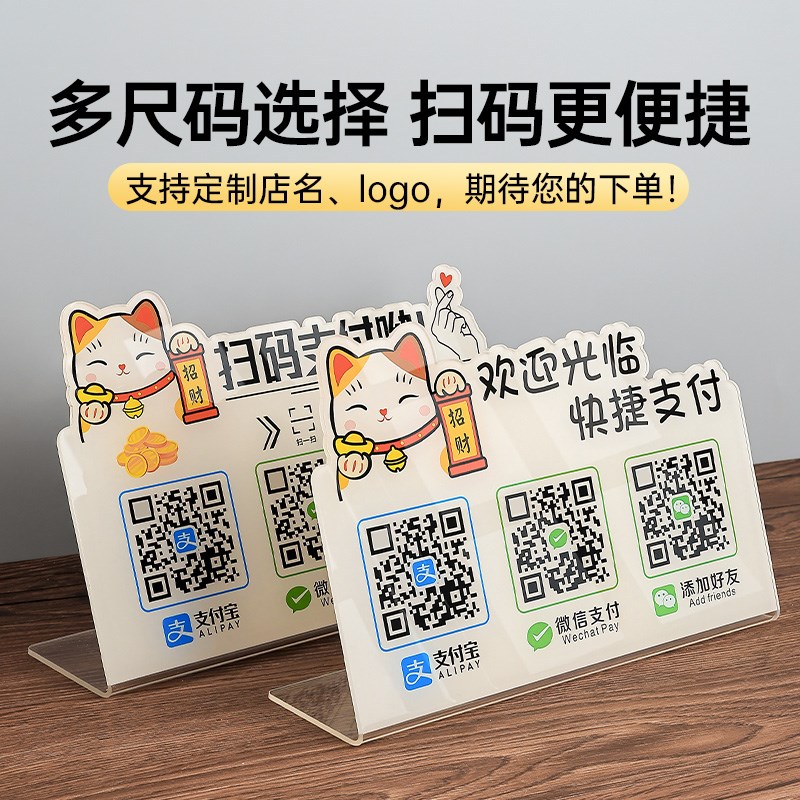 现货速发收款码摆台支付宝2025新款亚克力摆摊收付款二维码展示牌