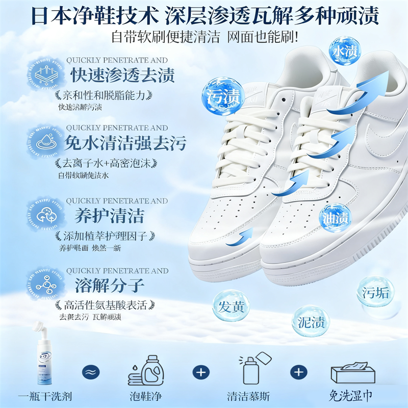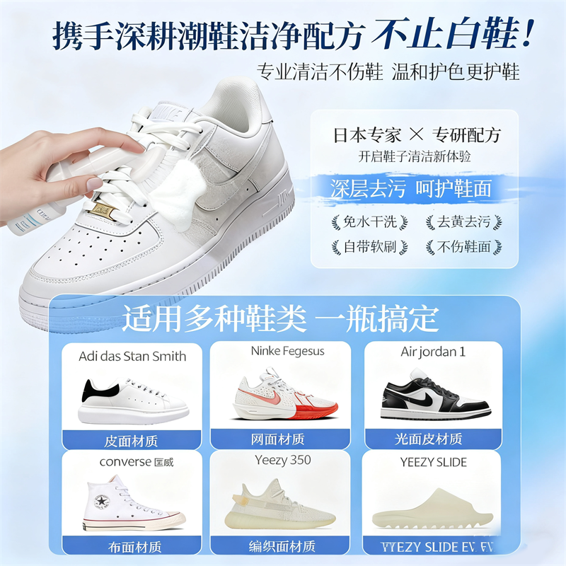 新款小白鞋喷喷净小白鞋清洗神器强力去污免水洗刷鞋泡沫清洁剂