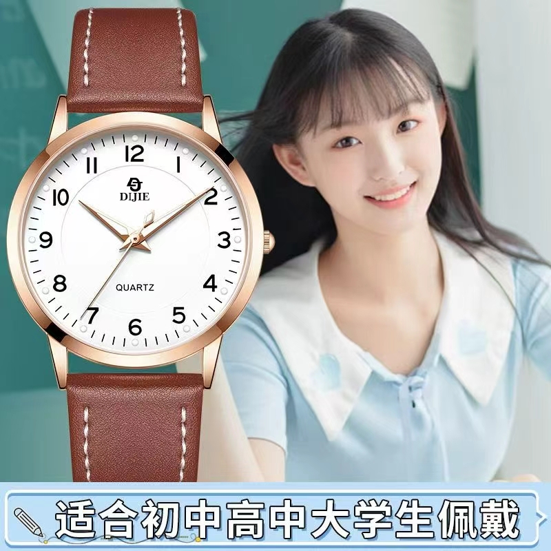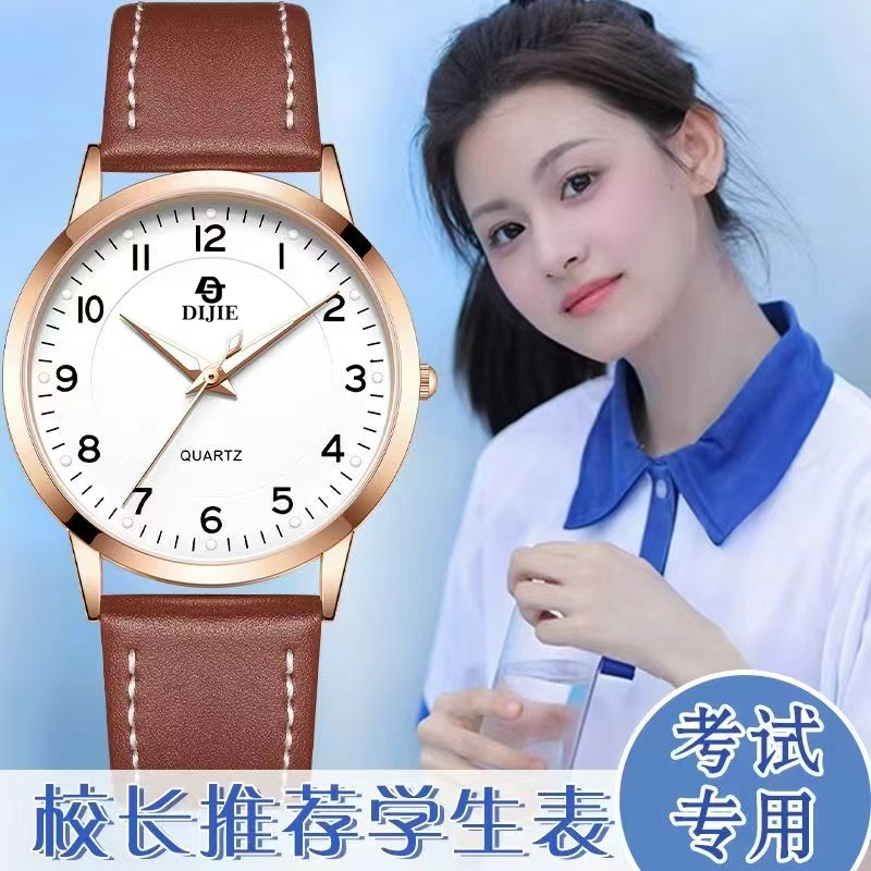 手表女学生初高中考试专用高颜值只看时间学院风石英表静音机械表
