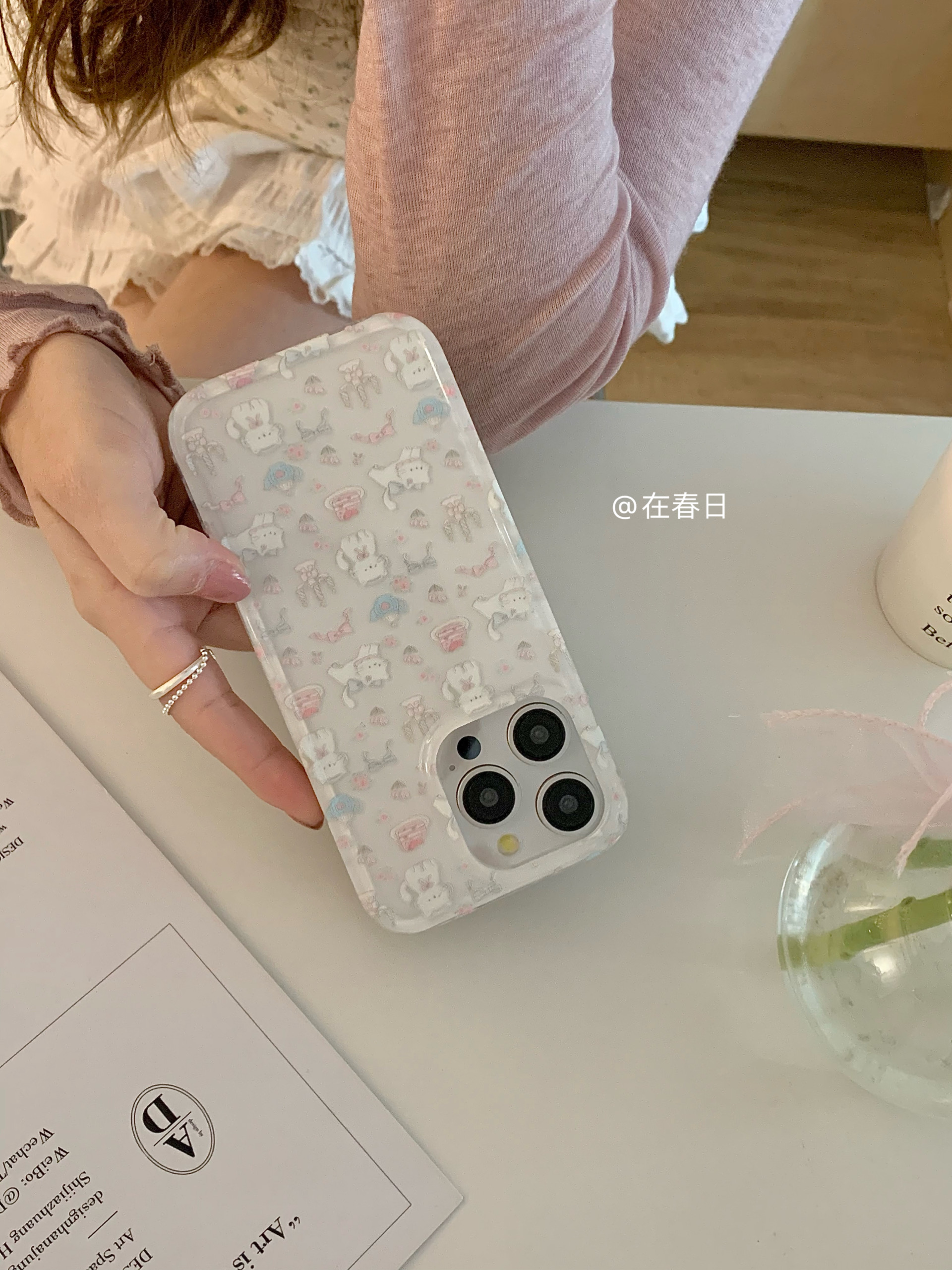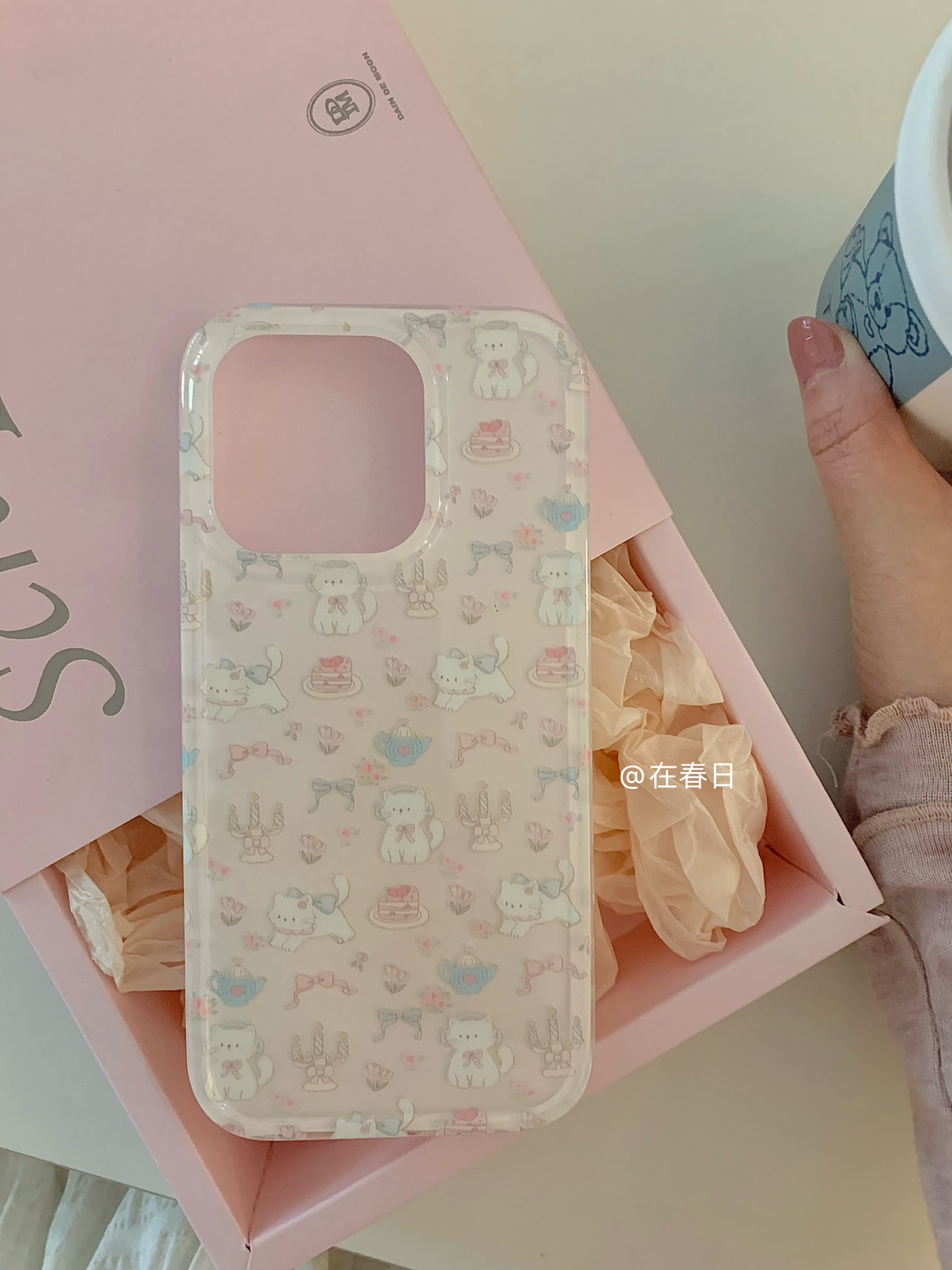 在春日奶油蛋糕猫咪双层印花手机壳适用16promax/14新款iPhone15pro全包17promax手机壳14promax/13