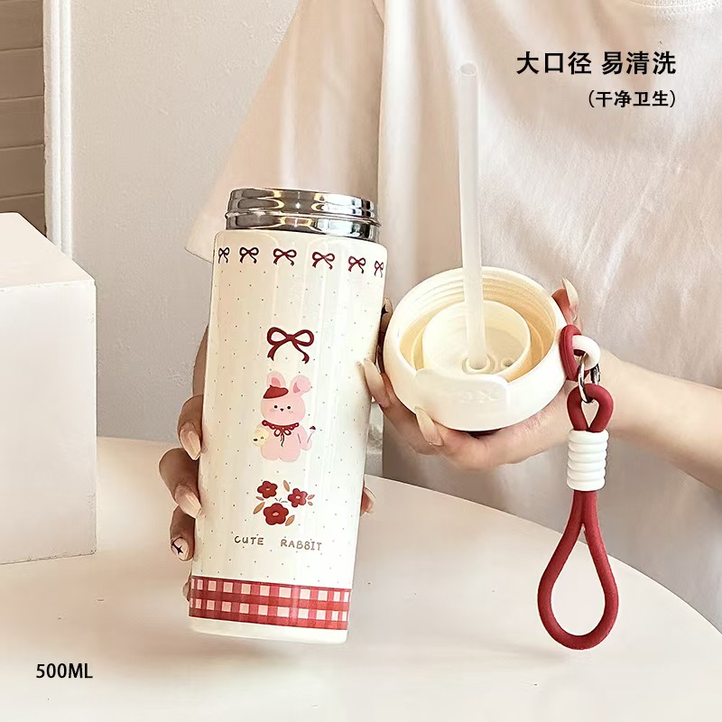 ins水杯316不锈钢保温杯高颜值学生户外便携提绳保冷吸管杯