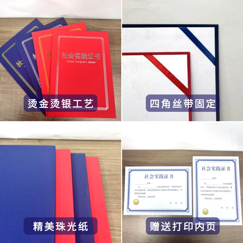 现货大学生社会实践证书珠光纸横版竖版烫金烫银获奖荣誉奖励奖状
