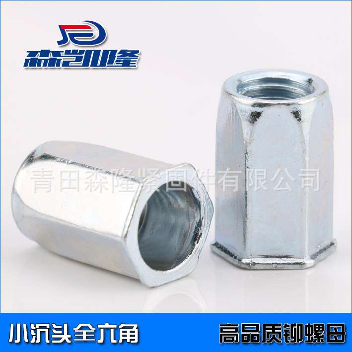 镀锌小沉头全六角拉帽铆螺母 M3-M12蓝白拉铆螺母厂家现货