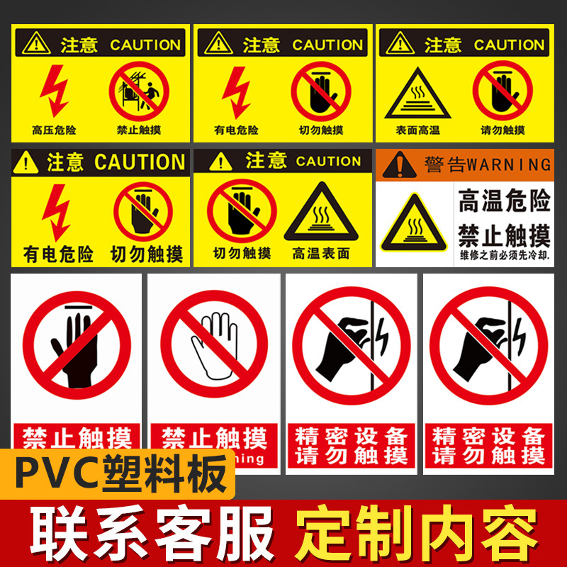 禁止触摸警示牌有电危险运转中不要触碰高温表面标识牌安全操作管理标语挂图墙贴塑料板告示警示提示标示标志