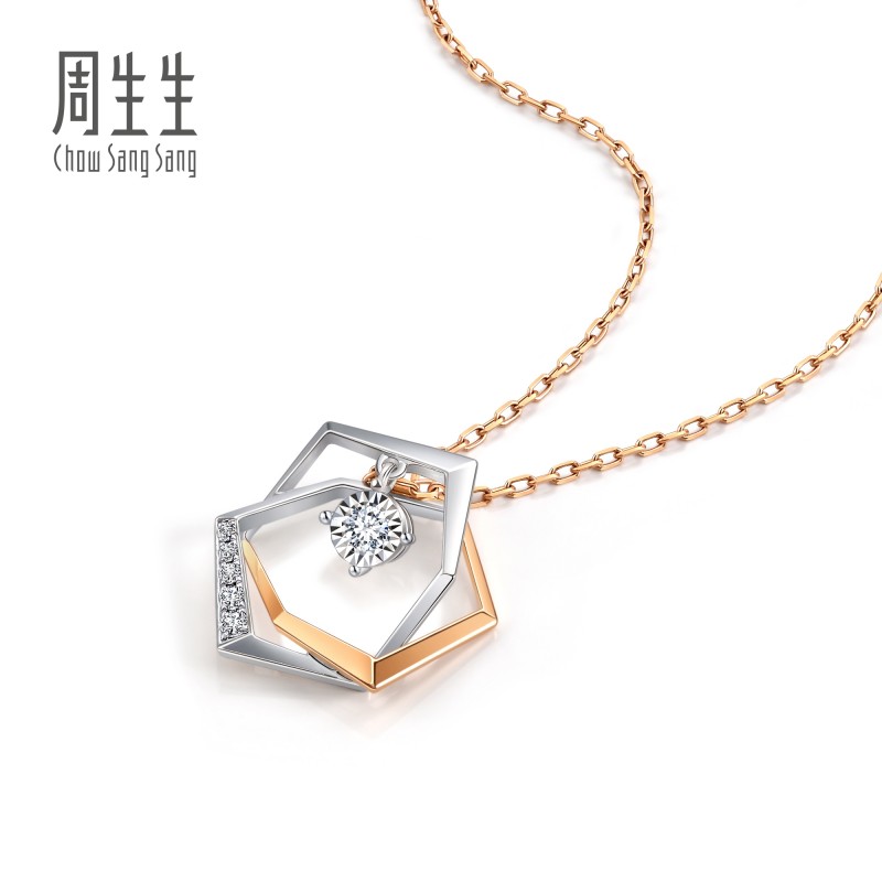 周生生18K白色及玫瑰色黄金炫幻几何钻石项链套链93042U