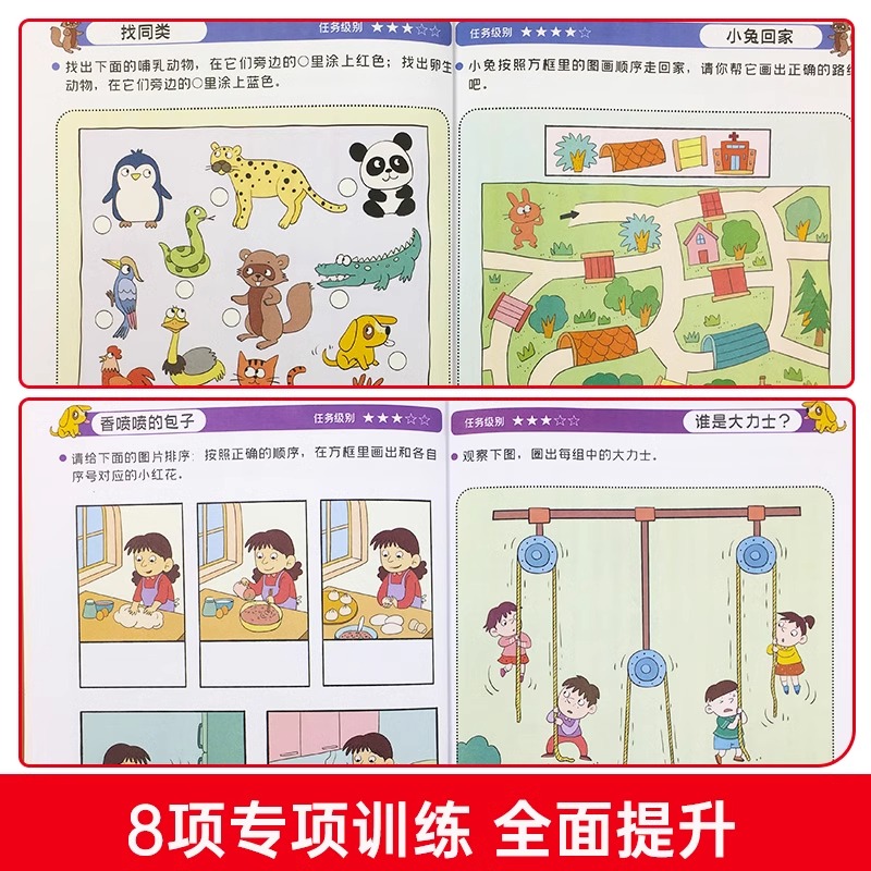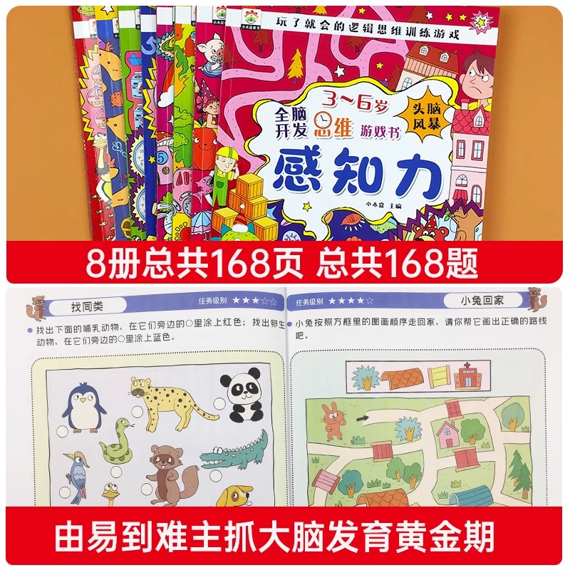 全脑开发思维游戏书8册3-6岁逻辑训练书开发大脑智力宝宝幼儿园儿童早教数学游戏左右脑记忆大中小班幼儿益智思维训练书籍专注力