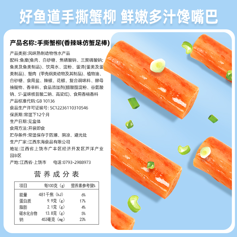 好鱼道手撕蟹柳蟹棒蟹柳棒蟹肉棒蟹足棒即食解馋小零食休闲小吃