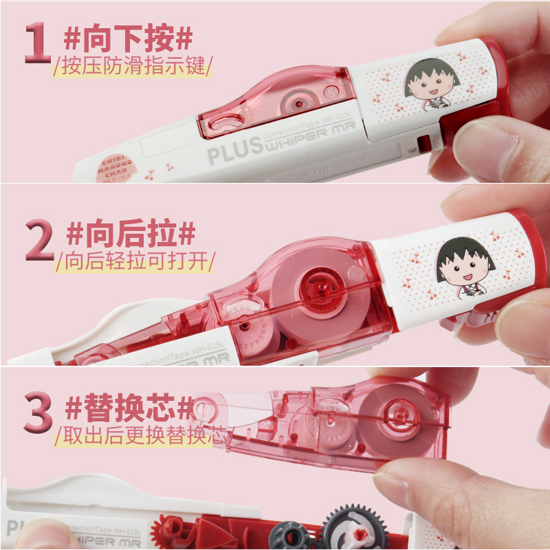 【买一送一】樱桃小丸子联名日本PLUS普乐士修正带限定款涂改带可换替芯改正带小学生用顺滑不易断改错带