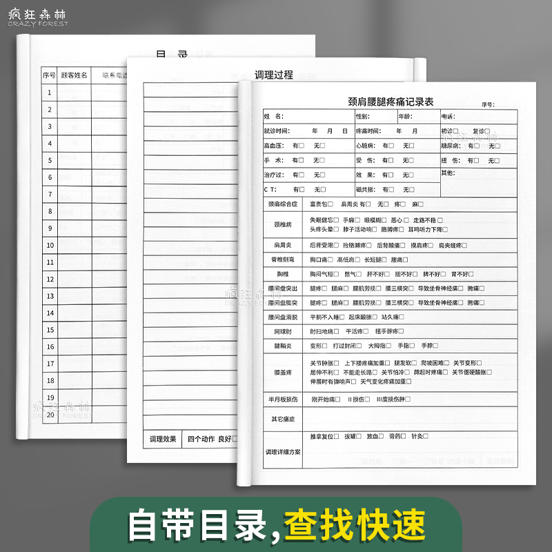 颈肩腰腿疼痛调理本中医馆中医问诊理疗登记养生馆顾客档案健康管理记录正骨调理记录痛症疼痛健康管理档案本