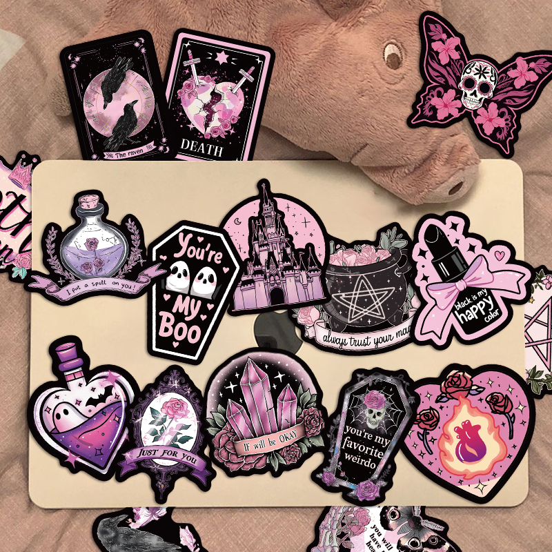 100张黑粉哥特风贴纸卡通可爱精致手账手机壳笔记本装饰防水贴画